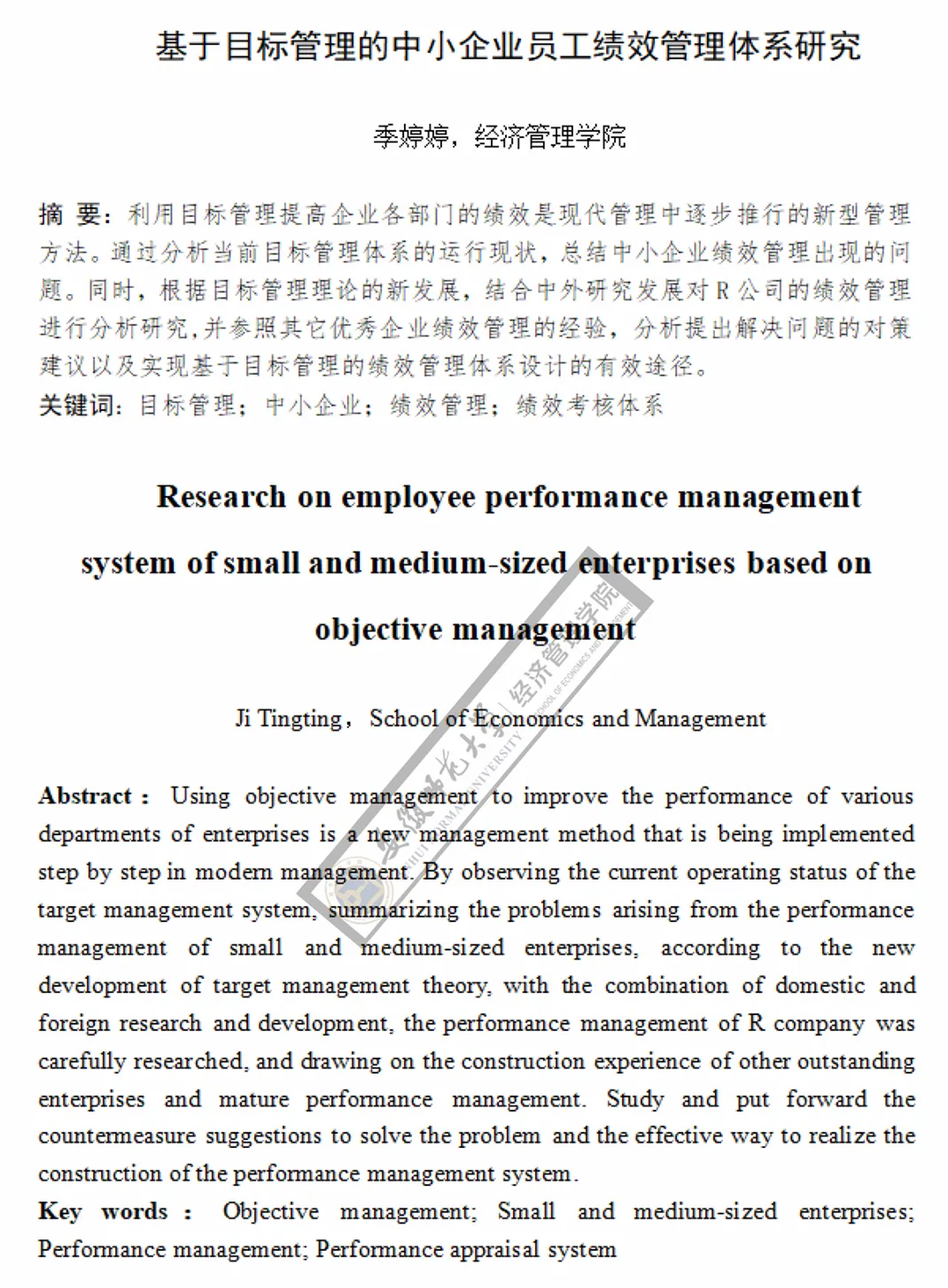 今天院君为大家带来16级人力资源管理季婷婷同学的论文