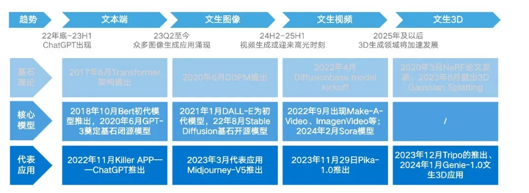 金融。面对激烈的市场竞争,传统金融行业已难以满足消费者个性化需求。金融行业具有资源密集型特点,利用AIGC分析、生成能力可提升其服务效率,推动其优化业务流程,提供更便捷的以客户为中心的产品与服务。具体而言,AIGC主要被应用在风险评估、量化交易、柜台业务办理等方面。在风险评估环节,AIGC可快速分析分散的、多维交易数据和行为模式,精确监测并识别潜在风险和检测欺诈,提高风控精确度。在柜台服务环节,AIGC可根据客户需求和自身画像,为其推荐更适宜的产品和定制化金融服务,提高客户满意度。对于ToC类企业而言,AIGC将帮助游戏、影视、出版等行业提高内容产出效率,提升消费者体验出版。对于以内容为根本的出版业而言,AIGC将引发内容生产范式变革。一方面,AIGC替代用户成为内容生产者,迅速提高内容产出效率;另一方面,AIGC可辅助完成编辑工作,节省编辑工作时间,释放人力。具体而言,在内容生产环节,AIGC的文本输出能力辅助作者完成内容创作,后续随着技术的发展,甚至可直接创作内容,并拥有独特的写作风格。目前,部分小说网站推出AIGC辅助创作功能,作者输入特殊关键词,即可自动生成内容,并为作者提供灵感。在编辑环节,AIGC可通过抓取热点新闻、事件,基于自动分析挑选选题的同时,基于文本识别和深度学习模型,快速完成文章审校工作,提高编辑工作效率。游戏。在行业竞争愈发激烈且玩家喜好更加细分的背景下,AIGC与游戏的融合,从内容、画面、玩法等方面全面优化玩家游戏体验,并提高游戏自身竞争力。在内容和玩法方面,一方面,AIGC提高NPC对话逻辑性、细化语调、表情和肢体动作、将环境与NPC搭建起情感联系,增强玩家与游戏的交互性,为玩家提供自由度较高的沉浸式体验;另一方面,输入目标、场景、角色等信息,AIGC可生成玩法文案,提供关于机制和故事情节等方面建议,平衡并丰富游戏玩法,提升游戏的趣味性。此外,AIGC可辅助生成更精美的画面,工作人员通过文字表述即可生成图片和动画,提高绘画效率的同时,提升玩家的体验。影视。影视行业工作流程普遍较长,涉及大量人力与时间成本,AIGC将赋能影视制作全流程,从策略、摄制、制作到宣发阶段,大幅降低影视行业门槛,提供内容创意参考的同时,实现行业的降本增效。在策划阶段,深度学习算法可通过快速大量阅读已发布影片,再结合关键词,为编剧提供剧本创意参考的同时,在剧本完成后,也可帮助编剧进行润色和翻译等工作。在摄制阶段,一方面,导演可利用AIGC帮助完成分镜绘制、镜头语言设计等工作;另一方面,制片人可省去日程安排、制片统筹、剧组预算等基础工作所需时间,实现工作的简化并节省时间成本。在后期制作阶段,AIGC可完成如添加字幕、视频剪辑、视频调色等基础工作,随着技术的成熟,也逐渐可完成特效制作、动画制作等复杂工作。以2023年奥斯卡最佳影片《瞬息全宇宙》为例,这部科幻电影的视觉效果团队仅有五人,他们通过与Runway合作,使用其AI工具完成背景、放慢视频、制作无限延伸的图片等工作,极大地提升了视觉特效制作效率。尽管AIGC可大幅提高各行业的智能化水平及运营效率,但其发展仍存在一定局限性,应用端存在诸多挑战SaaS。AIGC在SaaS行业中的应用带来了数据隐私和信息安全等问题。在提供个性化服务和支持的过程中,AIGC需要输入企业内部运营、财务、个人交易等敏感信息数据。而AIGC模型具有潜在的记忆能力,在生成内容的过程中可能无意提取其他用户的私人数据,由此带来严重的隐私泄露风险。数字设计。设计行业对版权要求尤为重要。AIGC通过来自互联网、第三方数据集等大规模数据进行训练时,可能包含通过网络爬虫或其他方法获取的未经授权的数据,进而生成类似风格的衍生作品,易产生已存在内容和新创意元素的混合物,进而引发知识产权归属混乱的问题,产生潜在的法律风险和版权纠纷。尤其在数字设计领域,AIGC的应用可能涉及大量原始数据的使用和转换,生成作品版权归属存在较大争议。金融。金融行业大多交易需参考各方信息,对信息准确性要求较高。然而,基于历史和实时信息,AIGC所做分析准确性仍有待提高且无法预测意外事件的发生。近年来,金融机构纷纷推出智能顾问等生成式AI工具,若投资者过度依赖其提供的预测和建议,可能导致不理智的投资行为,加剧羊群效应,进而增加风险集中度。此外,AIGC易生成虚假新闻或误导信息,导致投资者做出错误决策的同时,可能导致市场价格异常波动。游戏。作为一种高度强调实时人机互动的娱乐形式,AIGC的出现让玩家在虚拟世界获得了更好的沉浸式体验,但不受剧情控制、无限延展的人机对话,在交互内容合规方面存在较大不确定性,若AIGC对过滤词把控不力,玩家可能会受到冒犯或伤害。影视。对于需引起情感共鸣的影视行业,相对于人类基于丰富情感和深厚阅历的创作,AIGC仅能依靠已有数据和算法生成较为生硬、冰冷的内容,拟人化的情感表达尚待提升。出版。在文学领域,对于内容所涉及的伦理和道德问题要求较为严格,目前,AIGC无法确保生成内容的合规性,用于开发AIGC模型的训练数据可能包含歧视、暴力等内容,从而生成种族歧视、性别歧视等有害内容。总体而言,AIGC依托多模态大模型、深度学习算法等赋能金融、游戏、出版等千行百业,但带来的如伦理、版权、数