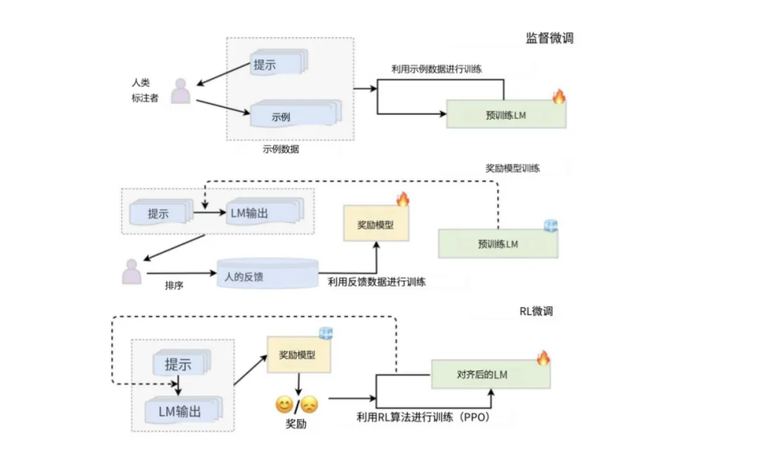 除了数据预训练外,LLM还需要进行数据预处理、网络框架设计和训练方式选择等步骤。数据预处理是指对原始数据进行清洗、分词、编码等操作,以便于模型输入和输出。网络框架设计是指选择合适的深度神经网络结构,以实现高效的信息传递和表示学习。训练方式选择是指采用合适的自监督学习方式,以利用无标注或弱标注的数据进行模型训练。目前,最常用的网络框架是Transformer模型,最常用的自监督学习方式是掩码语言建模(MLM),它们已经在多个LLM中得到了广泛应用。为了进一步提升预训练的语言模型的性能和适应性,可以通过指令微调和对齐微调进行优化。指令微调是一种基于自然语言指示的微调方法,它旨在提升或唤醒LLM的功能,使其能够理解并执行用户给出的自然语言指示,例如生成文本、回答问题、执行计算等。指令微调不仅可以增强LLM的通用性和灵活性,还可以改正模型在某些情况下的缺陷,例如生成不合理或不一致的内容、缺乏常识或逻辑推理能力等。指令调整比预训练更有效率,因为它只需用少量实例进行训练。在进行指令调整时需要平衡数据分布,常规操作是使用等额抽样,并增大高品质数据集的抽样比例以提升性能。另外,指令调整可以和预训练一起使用,同时利用原始文本数据和格式化数据进行多任务学习,从而兼具预训练和指令调整的优势[3-5]。LLM指令调整过程如图2所示。对齐微调是一种基于人类反馈的微调方法,它旨在将LLM的行为与人类价值取向或偏好相对应,例如遵守道德规范、尊重社会多样性、保护隐私权等。对齐微调需要收集高质量的人类反馈,并考虑一些非常不同的评判标准,例如公平性、可解释性、可信赖性等。对齐微调可以提高LLM的安全性和可靠性,防止模型产生有害或不良的影响。为了实现语言模型(LM)与人类价值观的一致性,工业界提出了一种从人类反馈中进行强化学习(Reinforcement Learning from Human Feedback,RLHF)的方法。RLHF使用强化学习算法,根据人类反馈来学习一个奖励模型,从而对LM的行为进行调节和优化。RLHF系统主要由以下3个部分构成。a)一个预训练的LM。可以生成自然语言文本或执行其他任务。b)一个从人类反馈中学习得来的奖励模型。可以评估LM的输出质量和符合度。c) 一个用于训练LM的强化学习算法。可以利用奖励模型的指导来更新LM的参数。如图3所示,RLHF遵循一个三阶段的过程,包括有监督微调、奖励模型训练和RL微调。在有监督微调阶段,使用标注数据来对LM进行初始训练,以适应特定的任务和领域。在奖励模型训练阶段,使用人类反馈数据来对奖励模型进行训练,以捕捉人类对LM输出的偏好和评价。在RL微调阶段,使用强化学习算法来对LM进行进一步训练,以最大化奖励模型的期望值。这个过程可以重复多次,以更充分地对齐LM与人类价值观。知识图谱和大模型是2种不同的知识存储和使用方式,各有优势和劣势。知识图谱是一种将知识以实体、关系、属性等概念进行显式、结构化、可控的表示和存储的方法,可以方便地进行知识查询、理解、更新和归因,同时也有利于进行逻辑推理和提供可解释性。大模型是一种利用神经网络参数学习和存储知识的方法,可以通过生成式的方式表达知识,表现出色的交互任务理解和生成能力,例如自然语言处理、计算机视觉等领域。然而,大模型也存在一些问题,如事实准确性、来源追溯、专业知识获取等方面的挑战。如何更好地融合知识图谱和大模型,发挥期优点,克服其弱点,是当前研究的重点。一方面,可以利用知识图谱为大模型提供结构化、可信、可解释的知识来源,增强大模型的事实准确性、来源追溯、专业知识获取等能力。另一方面,可以利用大模型为知识图谱提供生成式、灵活、多样的知识表达方式,增强知识图谱的交互任务理解和生成能力。这样,可以实现知识图谱和大模型之间的互补和协同,提高人工智能系统的整体性能和效率。有3种主要的结合知识图谱和大模型的策略,可以提高语言模型的知识表示和推理能力。a)将知识图谱转化成文本,作为文本语料的一部分去做训练。这种策略可以将知识图谱中的信息以自然语言的形式融入到大模型中,从而增强其语义理解和生成能力。例如,K-Adapter[6]是一种基于Transformer的语言模型,它使用了一个适配器层来融合来自知识图谱的文本信息,从而提高了在多个下游任务上的性能。b)保留知识图谱本身的结构化信息,在训练过程中作为特殊内容或结构融入大模型中。这种策略可以利用知识图谱中的图结构和关系信息,为大模型提供更丰富和准确的知识表示。例如,KT-NET[7]是一种基于BERT的语言模型,它使用了一个图注意力网络来编码来自知识图谱的结构化信息,并将其与文本信息相结合,从而提高了在问答和阅读理解等任务上的性能。c)使用外挂知识增强。将知识图谱创建为一个外挂知识库,当需要陈述事实、进行推理时,从知识图谱中获取事实部分,然后让语言模型自行处理推理部分。这种策略可以在不改变大模型本身结构和参数的情况下,动态地为其提供相关的知识支持。例如,GPT4[8]是一种基于GPT-3的语言模型,它使用了一个外挂知识库来存储来自知识图谱的事实信息,并在生成过程中根据上下文和查询条件从中检索相关信息,从而提高了在对话、摘要和故事生成等任务上的性能。基于向量检索知识库的文档