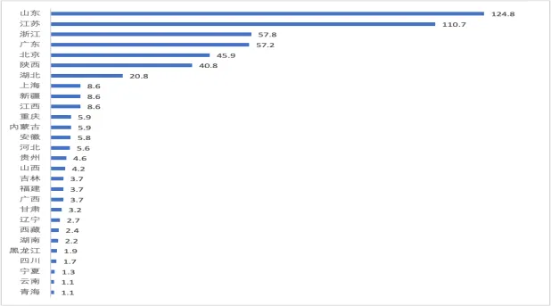 山东和江苏两省成为产业聚集地。企查猫的数据显示,中国工程机械制造行业在业新成立企业数山东省和江苏省是最多的,其次是浙江省、广东省和北京。
