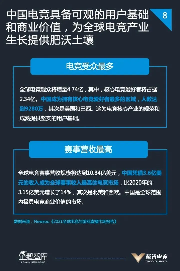 从更大范围来看,中国已经成长为全球电竞产业的最大市场:电竞核心观众、电竞赛事营收,均位列全球之首。中国电竞站在全球产业发展的前沿,未来,也期待中国电竞以更加自信的姿态,积极向全球电竞产业输出中国模式。