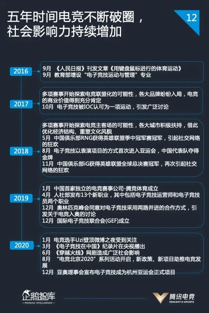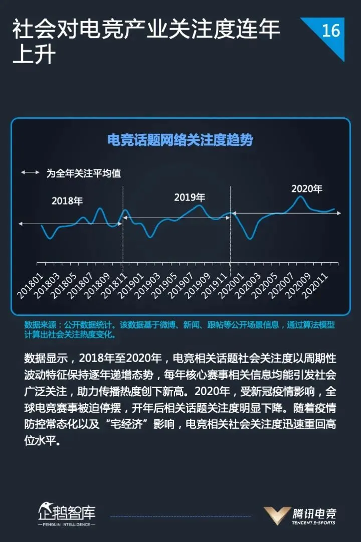 从2003年成为正式体育竞赛项目,到2021年成为杭州亚运会正式比赛项目,在一系列政策的积极推动下,电竞产业呈现高速增长趋势,社会认知度与用户基础不断扩大。腾讯电竞,作为中国电竞发展的参与者、见证者与主要推动者,将通过2021全球电竞运动领袖峰会、腾讯电竞年度发布会与电竞行业平行论坛三个部分的内容,回顾2020年电竞产业发展的同时,探讨未来全球电竞发展趋势。