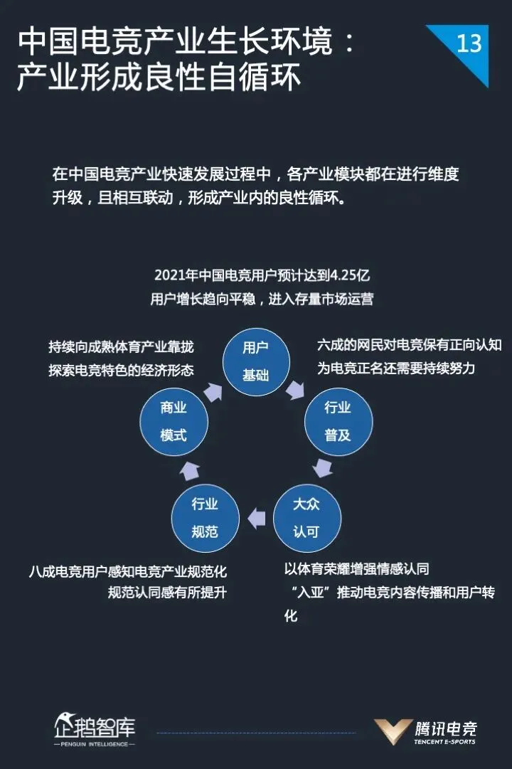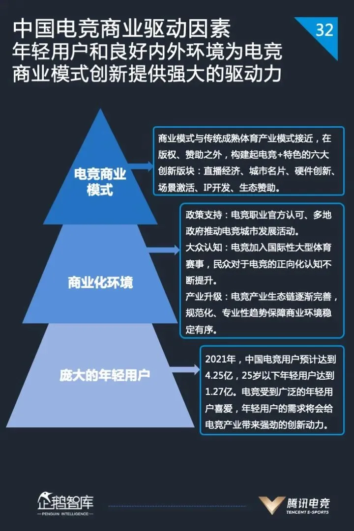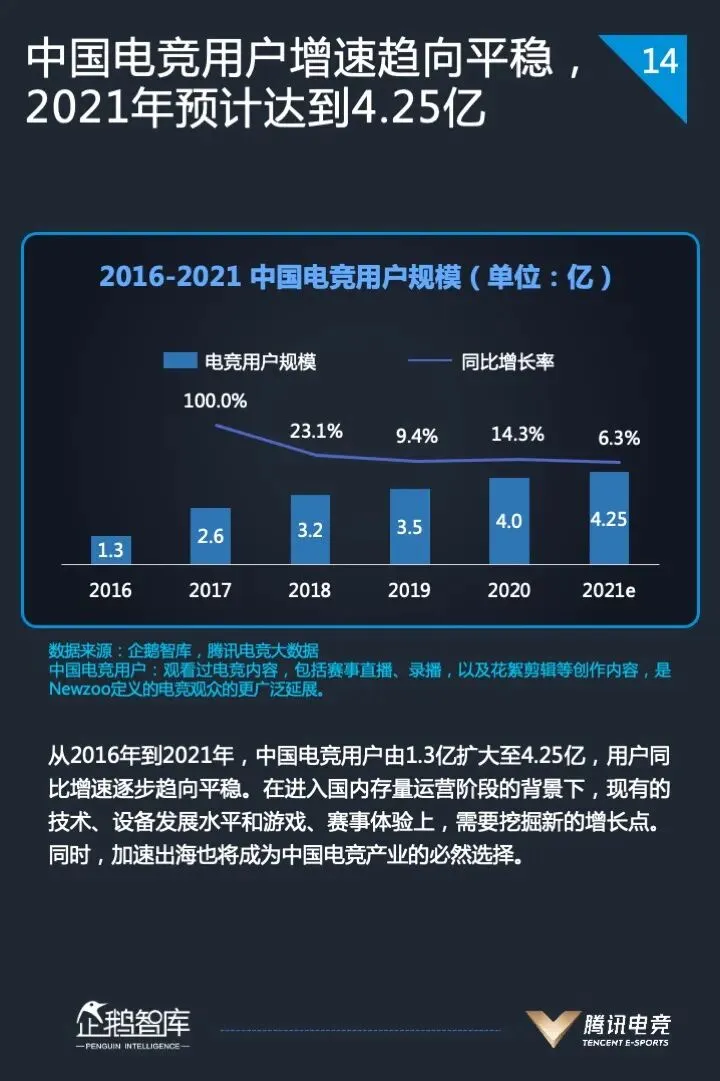 2021年,中国电竞用户预计达到4.25亿,用户增长进入平缓阶段,也标示着中国电竞市场的成熟。随着产业持续加码和大众认可度提升,电竞不断突破固有的边界,正在从社区文化向流行文化跃迁,“体育新形态”、“区域新引擎”、“文化新符号”相继成为中国电竞产业发展关键词。在规范化、专业化的基础上,中国电竞在近两年将会迈入新一轮的产业爆发阶段。