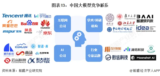 现阶段,我国大模型可以分为四大竞争派系,分别为互联网公司、AI公司、学术及科研机构以及行业专家团队初创公司,其中,互联网公司主要是百度、阿里、腾讯、华为等互联网大厂,核心竞争优势是汇集了大量高端人才,同时,平台技术发展相对全面、快速。AI公司主要是澜舟科技、昆仑万维、商汤科技等以AI研发及利用为主的科技公司,其核心优势是主业专精于人工智能,相比互联网公司,技术优势更加明显。学术、科研机构包括清华、北大、复旦、中科院等国内一流高校以及智源研究院、IDEA研究院等科研机构,主要优势是学术氛围浓厚,通常行业第一手技术发源于此。行业专家品牌则是以一些AI专家带领的团队所研发出的产品为核心,通常,一个团队在短期内主攻一款产品,相比其他竞争派系,AI专家团队研发的产品在创新、突破方面做得更好,C端反馈好评度较高,盈利目的性就目前来看,略弱于互联网公司产品。