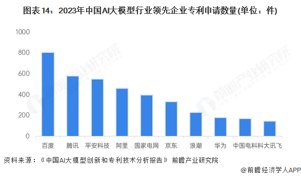 从大模型行业头部企业的专利申请数量排名来看,百度是国内AI大模型行业专利生申请数量最多的企业,截止2023年9月百度申请AI大模型相关专利数量达808件,高于排名第二的腾讯230件。