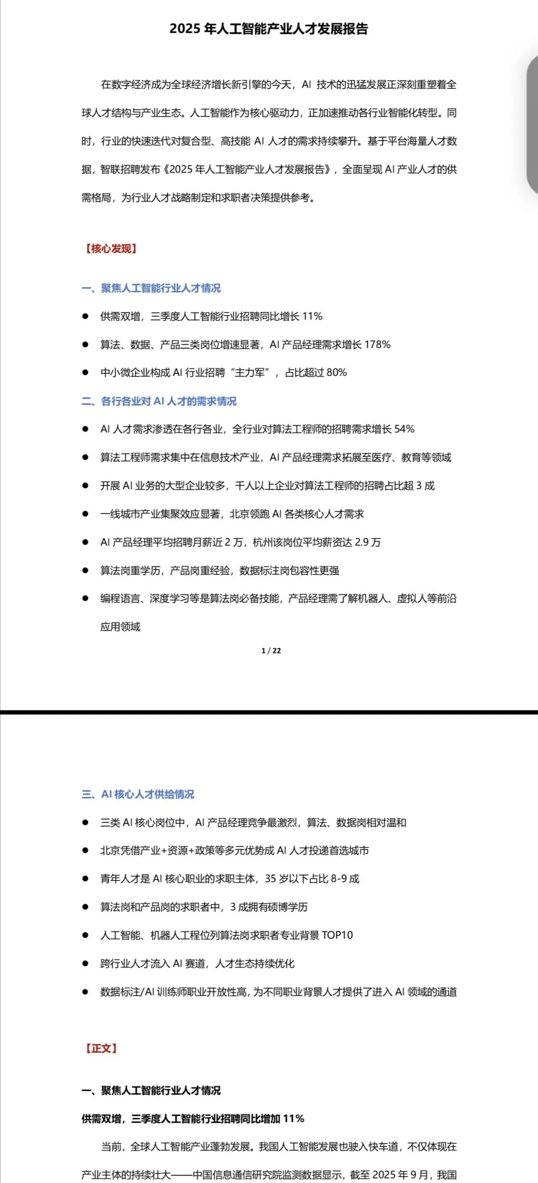 【完整报告获取:①非星球用户扫码下载(一年>400篇报告,一年为你节省找资料时间>7天);②星球用户在星球 App搜索“2025年人工智能产业人才发展报告”。】