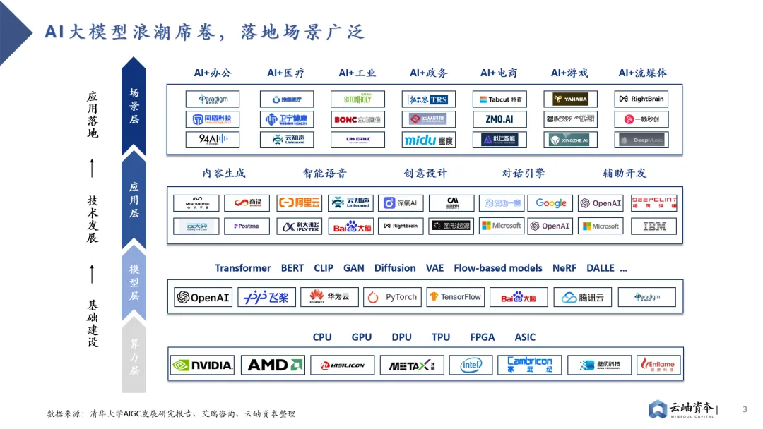目前,AI大模型+的浪潮正在席卷各行各业,展现出无限可能。在各类算力模型的基础上,业界已开发出了内容生成、智能语音、创意设计、对话引擎和辅助开发等功能,并应用于办公、医疗、工业、政务、电商、游戏、流媒体等多元化场景。