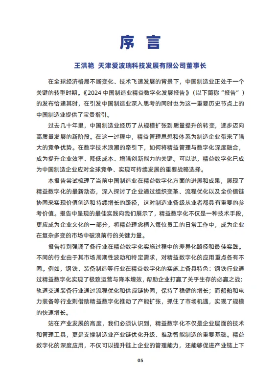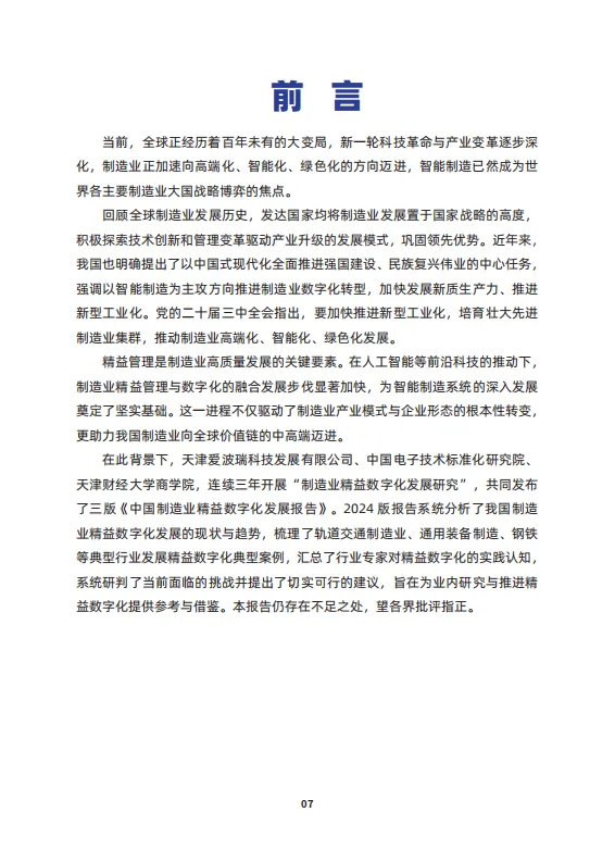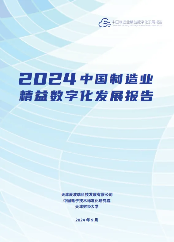 由中国企业改革与发展研究会企业管理分会、中国电子技术标准化研究院、天津爱波瑞科技发展有限公司、天津财经大学联合编写的《2024中国制造业精益数字化发展报告》于2024年9月20开幕的2024精益数字化创新大会上正式发布。