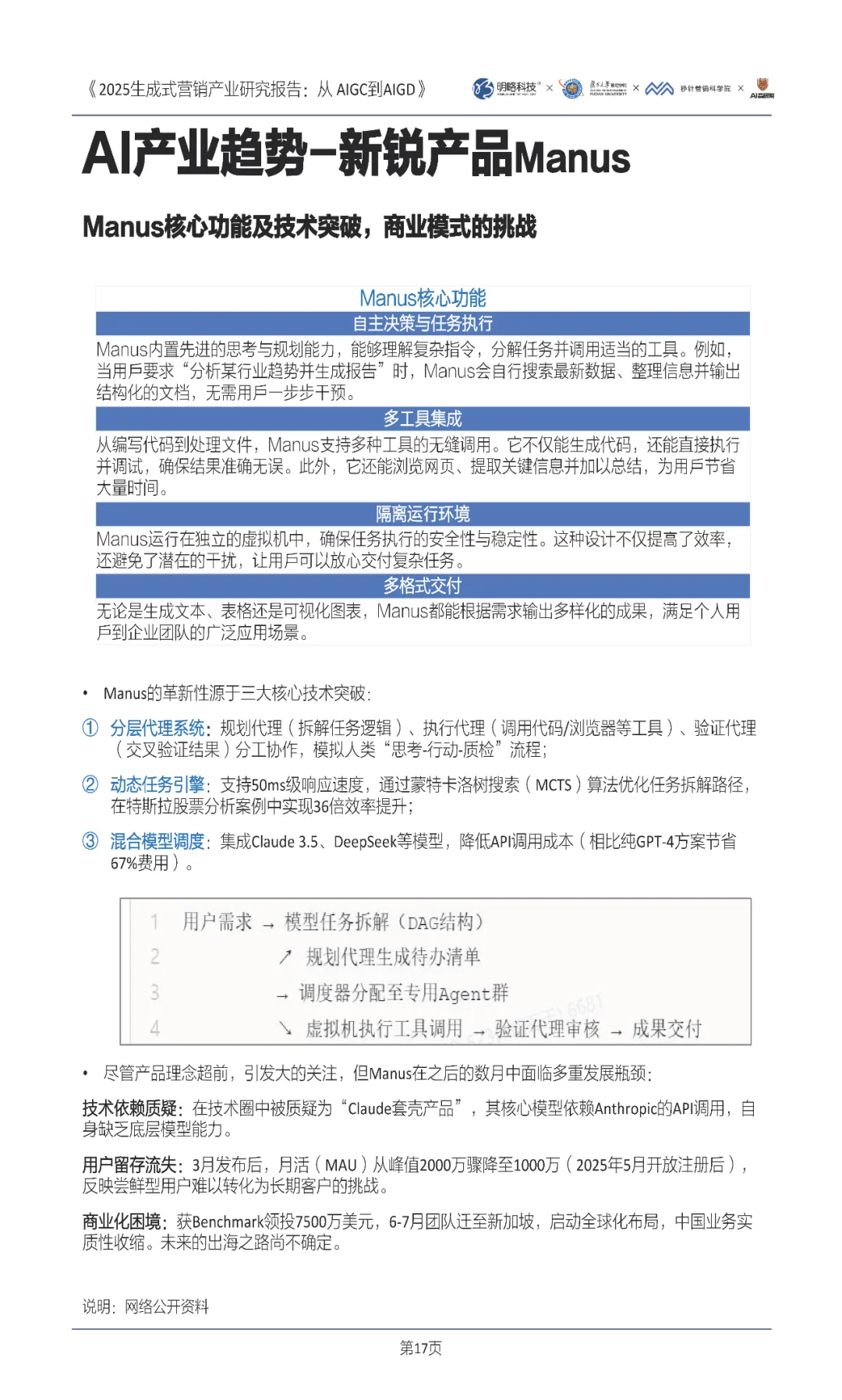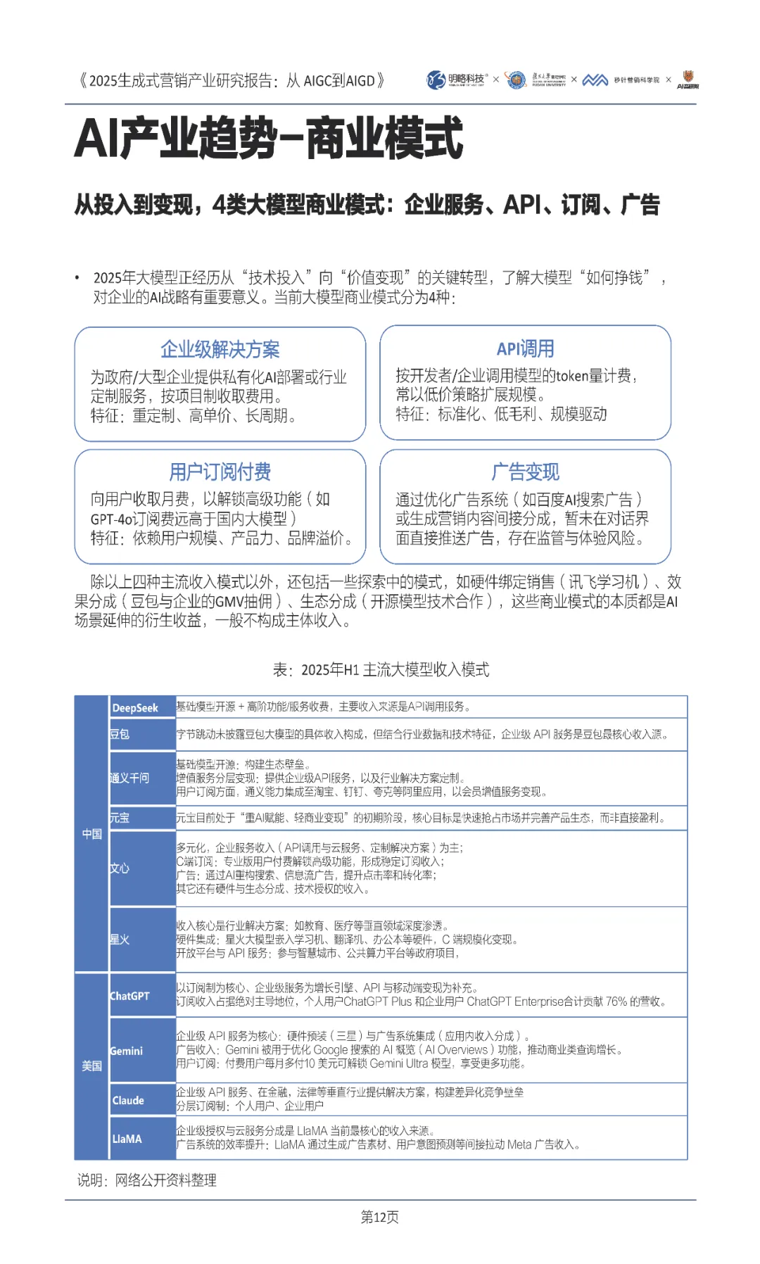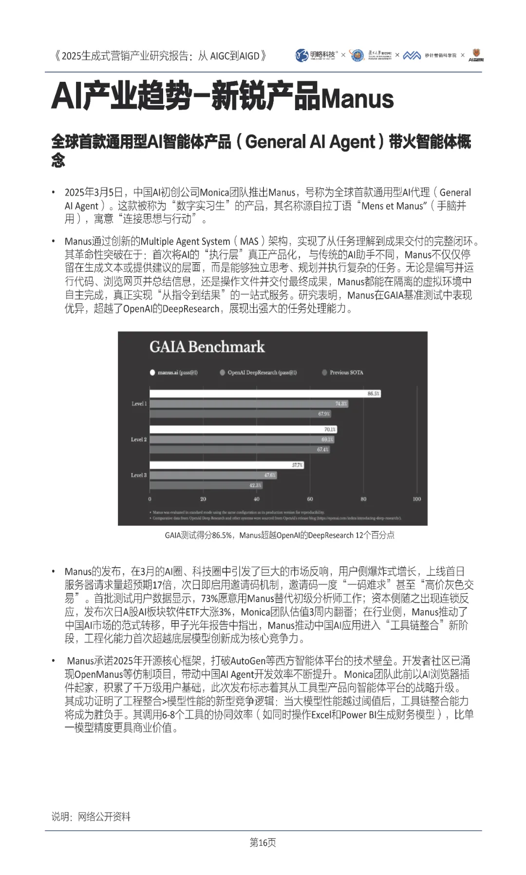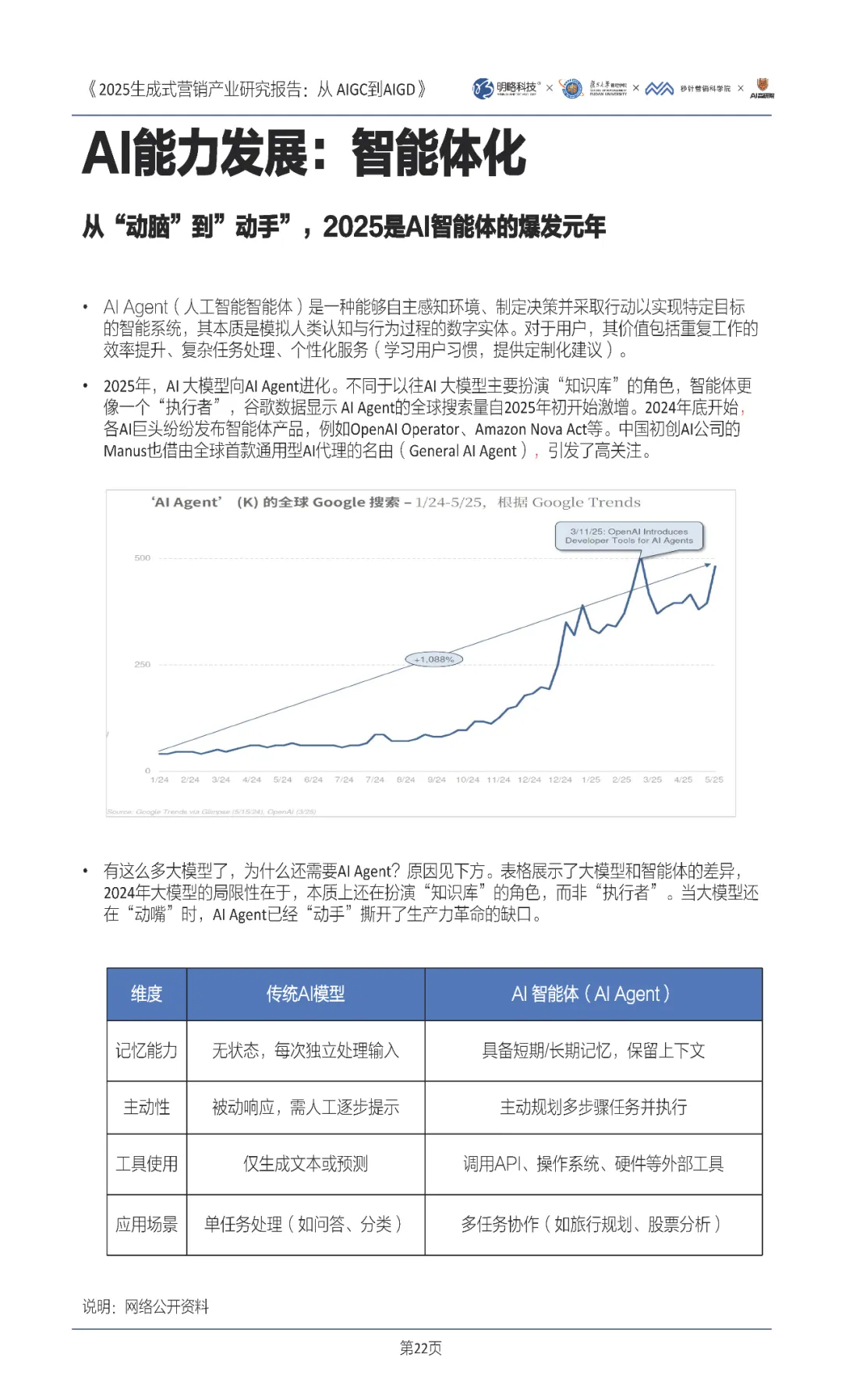 在数字化浪潮的推动下,人工智能(AI)技术正以前所未有的速度重塑营销产业。2025年,生成式AI(AIGC)已从技术探索阶段迈向规模化落地,不仅极大提升了营销效率,更在决策层面展现出巨大潜力。《2025年生成式营销产业研究报告》由明略科技、复旦大学管理学院及秒针营销科学院联合出品,深入剖析了AIGC在营销领域的最新趋势、能力发展、存在问题及实践案例,为营销人提供了宝贵的战略指南和行动手册。