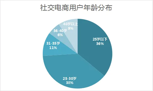 社交电商用户年龄分布方面,25岁以下用户占比36%。25岁-30岁用户占比38%,还有11%的用户年龄在31-35岁之间。整体看来,移动社交用户主要以80、90后为主。