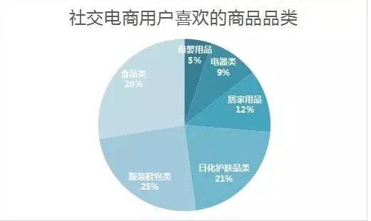 食品和服装鞋包是社交电商用户喜欢的商品品类