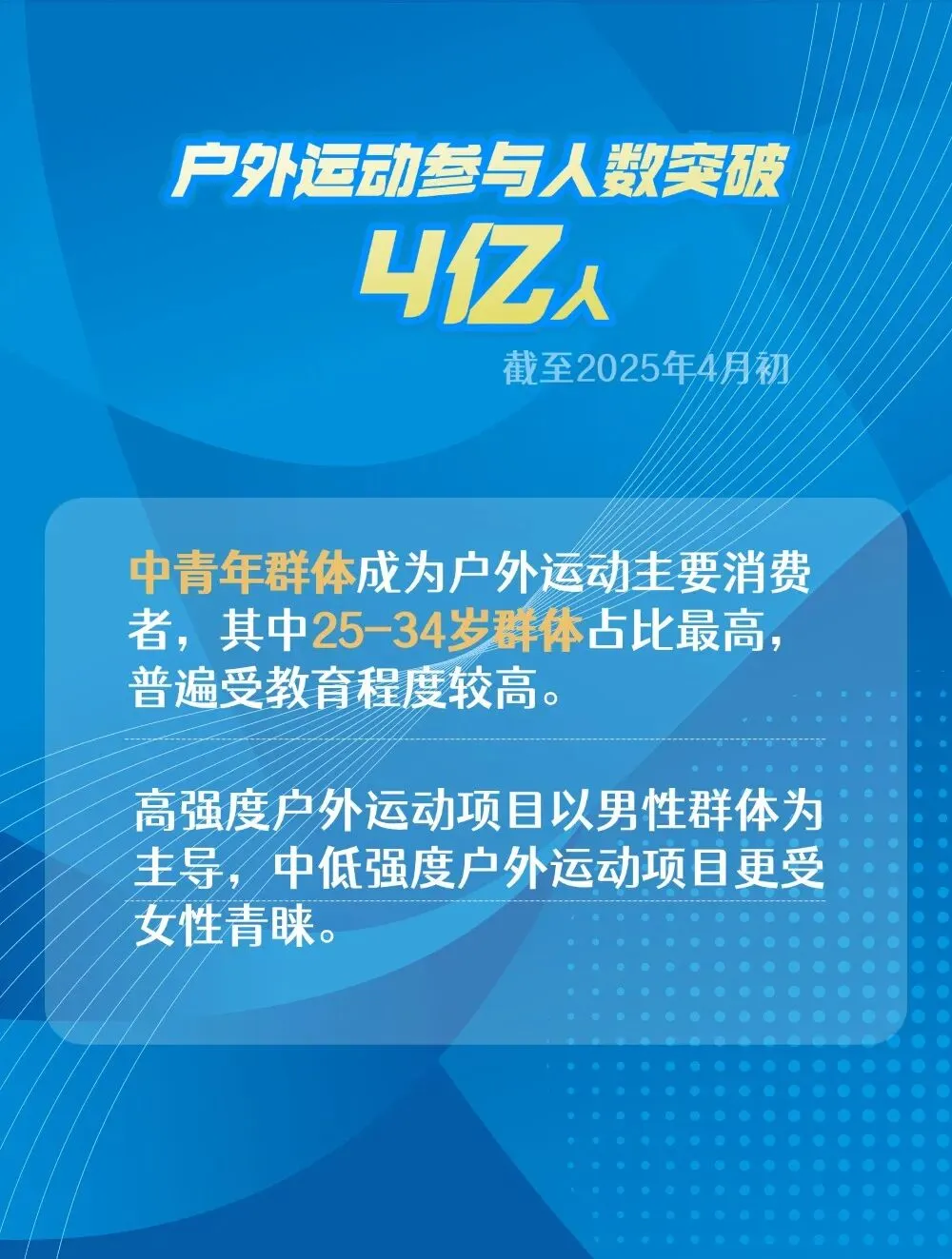 《报告》指出,2024至2025年,我国户外运动产业市场潜力有效激发、场地设施建设全面推进、服务体系日益完善,展现出蓬勃向上的发展态势。