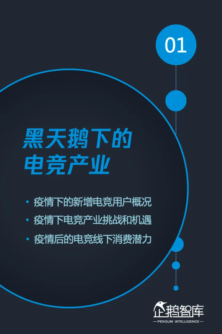 1. 疫情黑天鹅下的电竞产业 2. 全球电竞行业概况及用户洞察 3. 中国电竞产业未来发展趋势 4. 中国电竞商业生态及模式升级