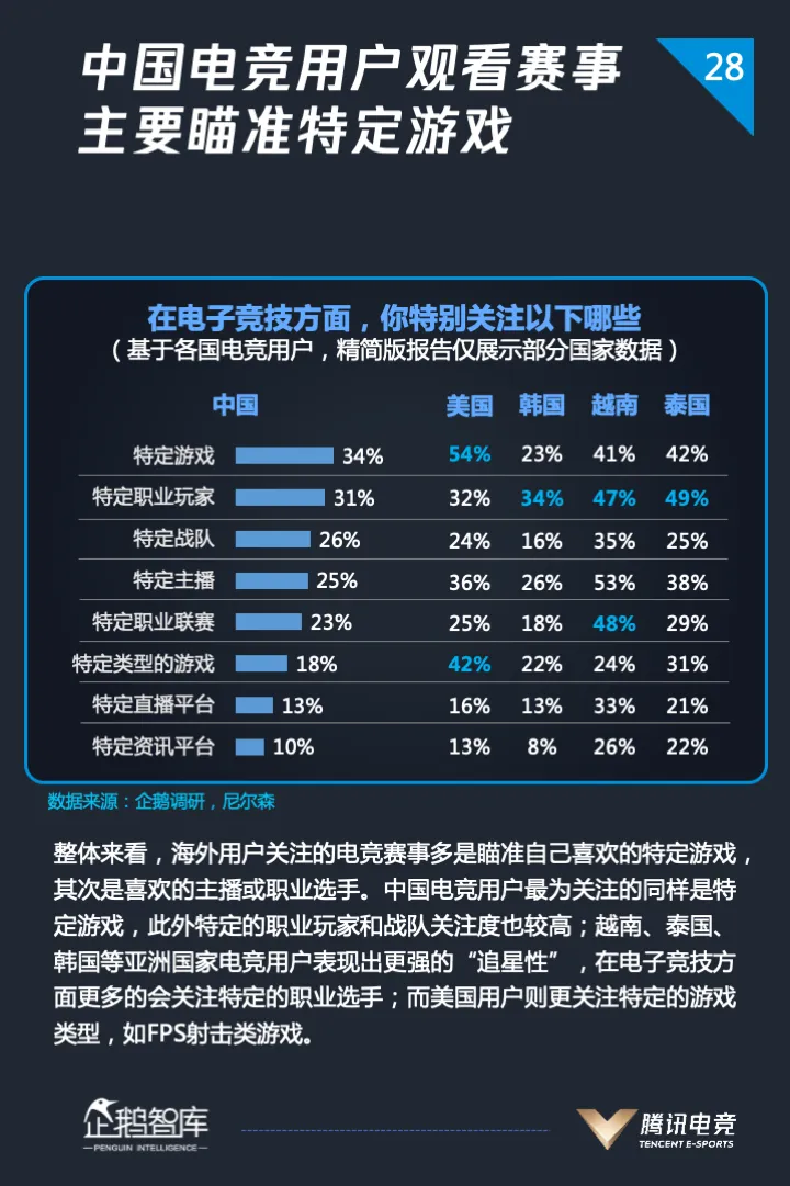 近日,企鹅智库在中国电竞用户数据、产业大数据的基础上,联合尼尔森进行海外电竞用户调研,同时引入电竞行业专家洞察,发布这份《2020年全球电竞运动行业发展报告》。