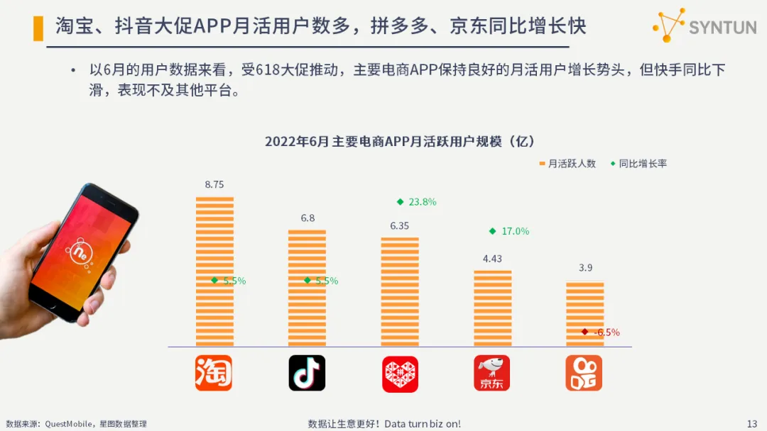 淘宝、抖音大促APP月活用户数多,拼多多、京东同比增长快