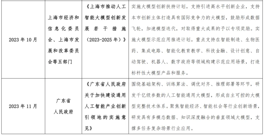 2024 年《政府工作报告》中提出开展“人工智能+”行动。伴随人工智能领域中大模型技术的快速发展,我国各地方政府出台相关支持政策,加快大模型产业的持续发展。