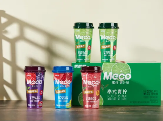 新消费品牌早已席卷我们生活的每个角落,以新式茶饮为首的新消费赛道,早已挤进了满满当当的对手。因此,更多的玩家只能不断“内卷”,在自己的领域中创造出一个又一个的新产品、新玩法,以及手打柠檬茶、养生五谷等新概念此消彼长。在这场争夺用户心智的品类硝烟中,惊喜于Meco蜜谷果汁茶的表现。Meco蜜谷果汁茶自2018年7月上市以来,以果汁茶品类开创者身份问世,随后以黑马速度保持高速发展态势,2019年上市半年破2亿,上市273天破7.7亿,随后迅速突破10亿大关,成为茶饮行业的现象级大单品。新式茶饮狂飙猛进的这几年,Meco蜜谷果汁茶是如何从中脱颖而出的?- 品牌定位;以“果汁+茶”的创意混搭建立差异化品类形象