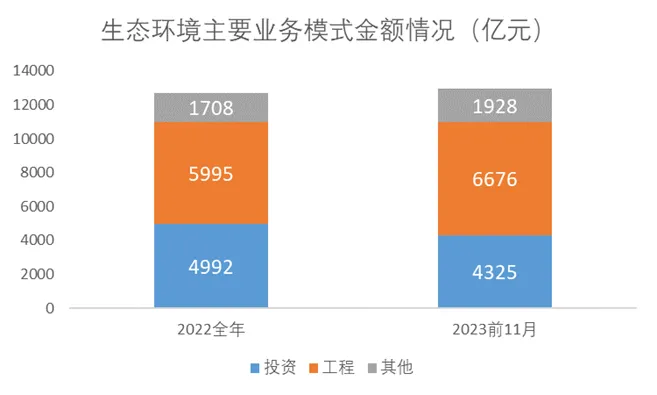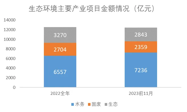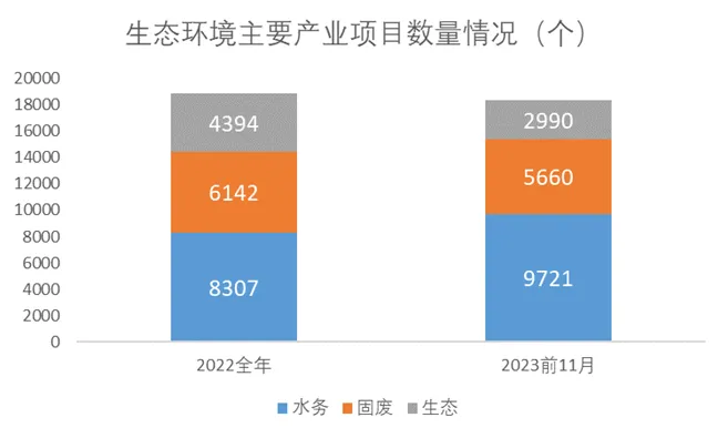 截止2023年11月,在水务、固废和生态三个重要领域,共有18,371个项目。