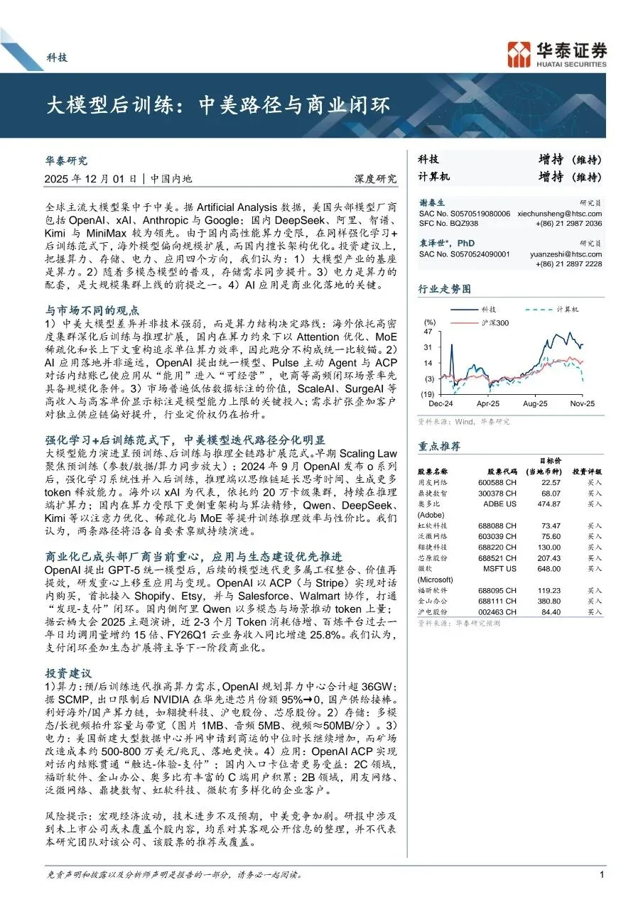 科技行业深度研究:大模型后训练,中美路径与商业闭环
