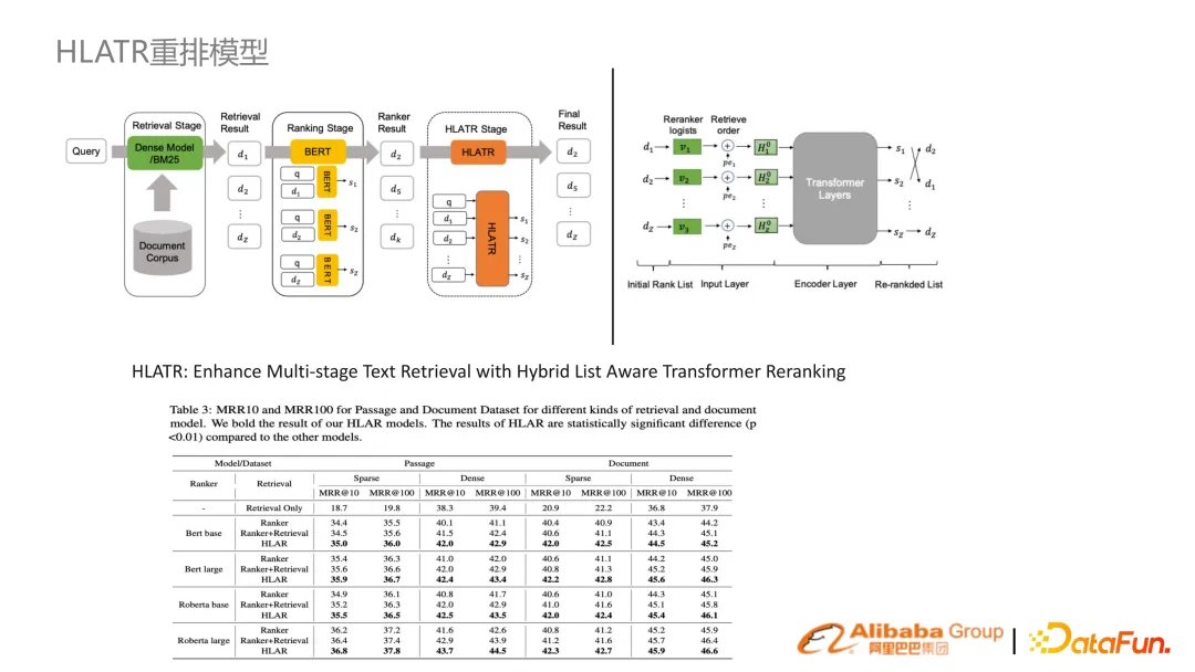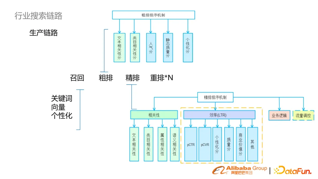 传统 sparse retrieval 的关键词召回 dense retrieval 向量召回,个性化召回 粗排阶段:使用文本相关性(静态)分数来做过滤 精排阶段:相对复杂,会有相关性的模型,可能结合业务的效率模型(LTR)
