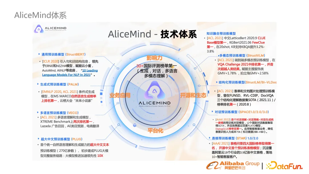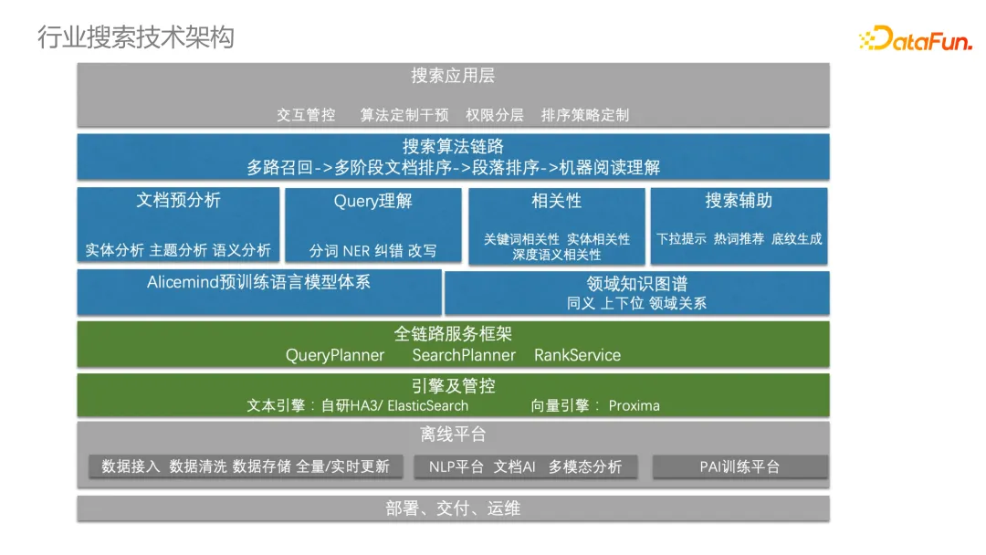 NLP 数据、NLP 基础的词法、句法语义,分析的技术,以及上层 NLP 技术 行业应用:达摩院除了做基础研究之外,还赋能阿里集团,以及结合阿里云去赋能行业产业。赋能的很多行业场景都是搜索。