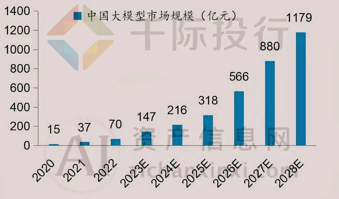 大模型市场容量及规模巨大,预计2028年将达到1179亿元。