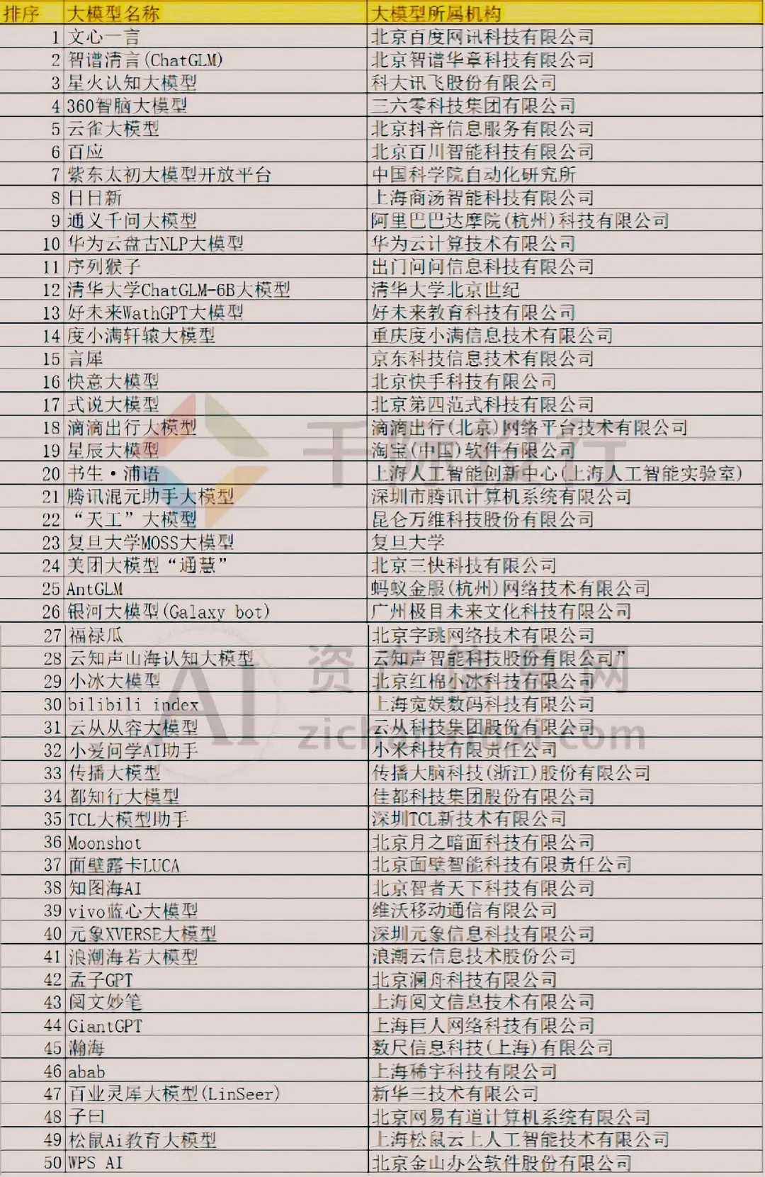2024年5月7日,由华算人工智能研究院、全国高校人工智能与大数据创新联盟从“产学合作协同育人”角度研究并推出“大模型中国50强榜单(2024)”。