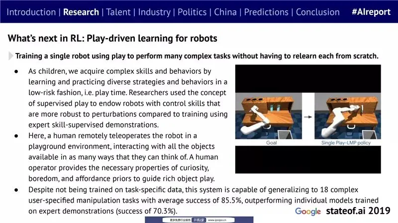 接下来,增强学习将有以下几个趋势:1、使机器人以玩耍的形式来学习,就像人类孩童时期获得复杂技能和行为时的方式一样;2、好奇心驱动的探索;3、面向在线计划学习动态模型;4、研究成果逐步实用化。