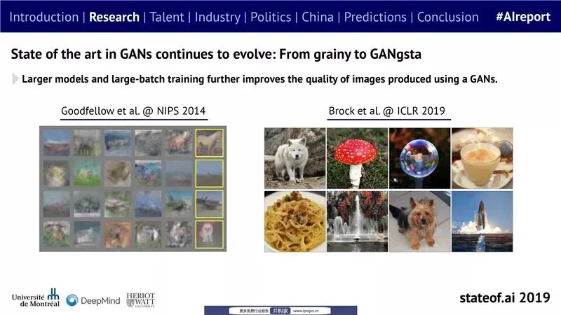 GAN的技术水平在不断发展,从颗粒到GANgsta,较大的模型和大批量训练进一步提高了使用GAN生成的图像的质量。