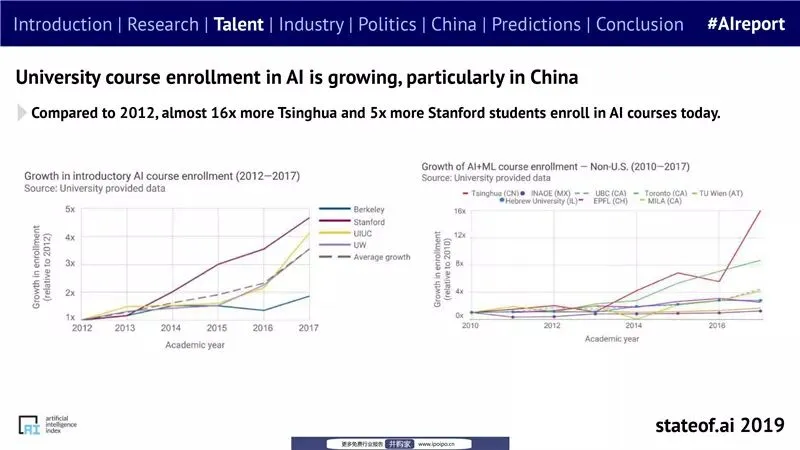 大学人工智能课程的招生人数在增长,尤其是在中国。