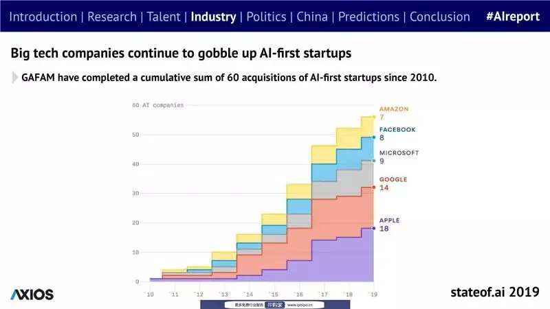 科技巨头继续吞并人工智能技术优势的初创企业。