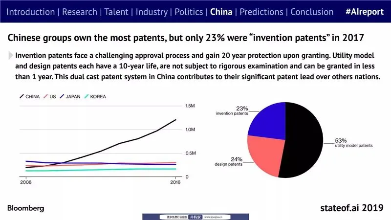 中国企业拥有的专利最多,但只有23%是“发明专利”。发明专利的审批过程充满挑战,一旦获得批准,将获得20年的保护。实用新型和外观设计专利都有10年的使用寿命,不需要经过严格的审查,可以在不到1年内授予。这种双重专利制度使中国在专利方面领先于其他国家。