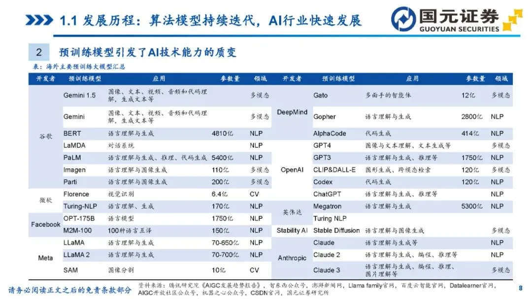 1.1发展历程:算法模型持续迭代,AI行业快速发展