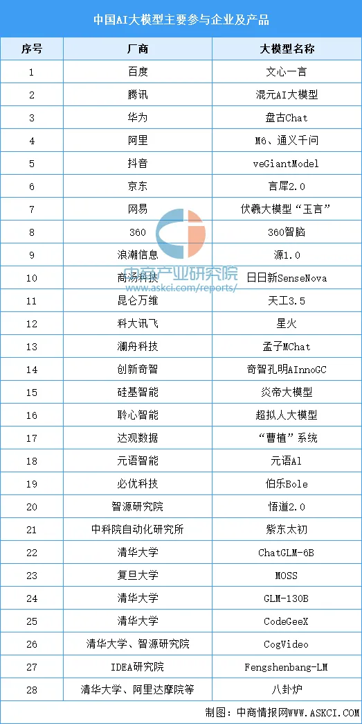 数据来源:《中国人工智能大模型地图研究报告》、中商产业研究院整理