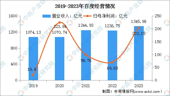 2023年,百度实现总营收1345.98亿元,同比增长9%,实现归母净利润203.15亿元。