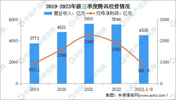 2023年前三季度,腾讯实现营业收入4538亿元,同比增长10.80%;实现归母净利润881.9亿元,同比增长7.58%。