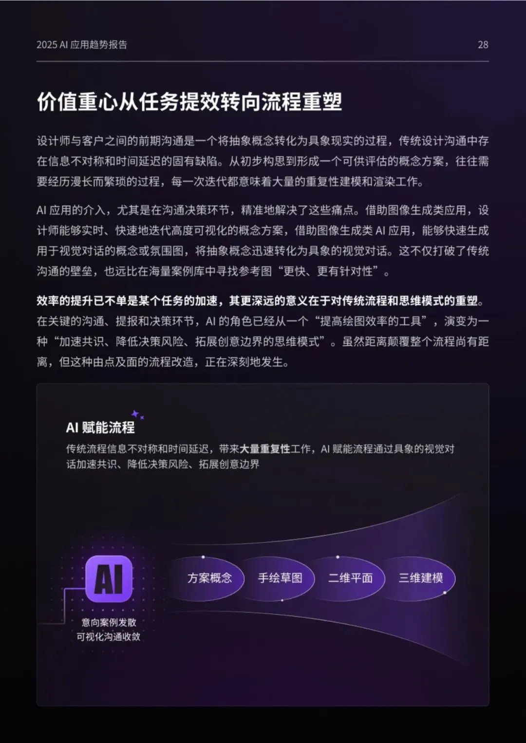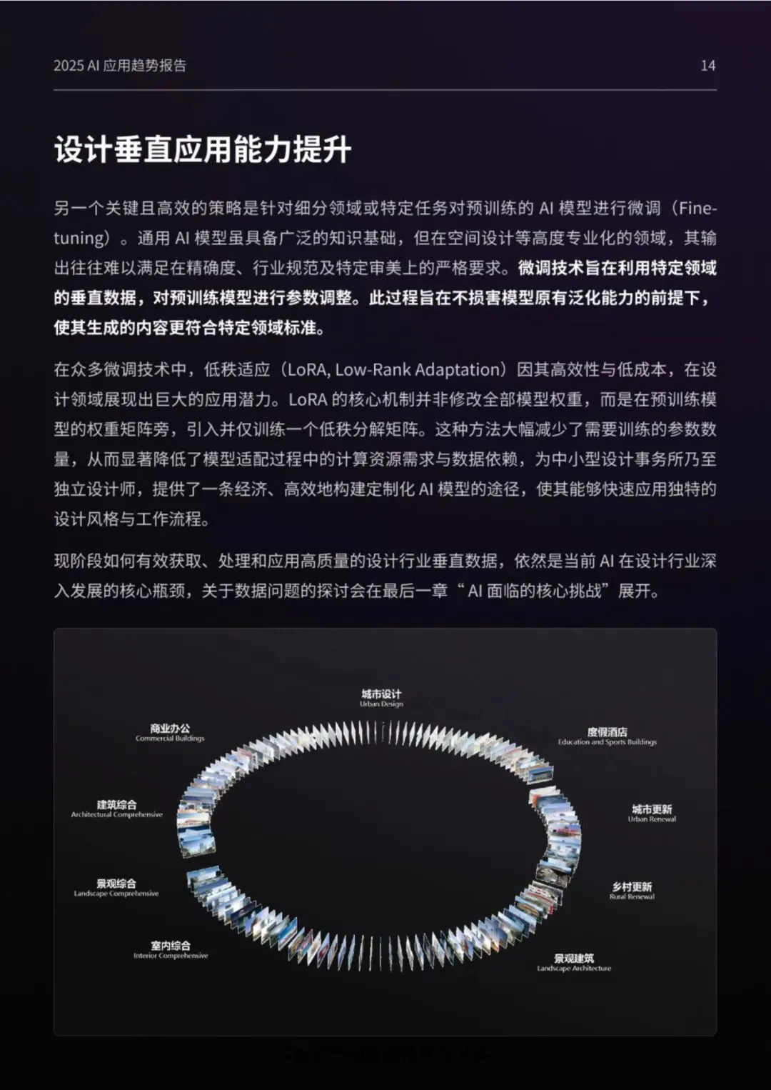 报告最后指出,AI在设计行业的应用仍面临挑战,包括生成式AI的可控性、一致性和质量,以及构建高质量垂直数据集的难度。此外,AI应用的碎片化也带来了整合连接的挑战,但市场正转向以聚合与连接为核心的新阶段,推动AI从提供单一功能向提供模块化能力集合和端到端自动化工作流发展。