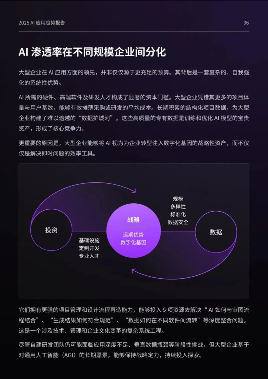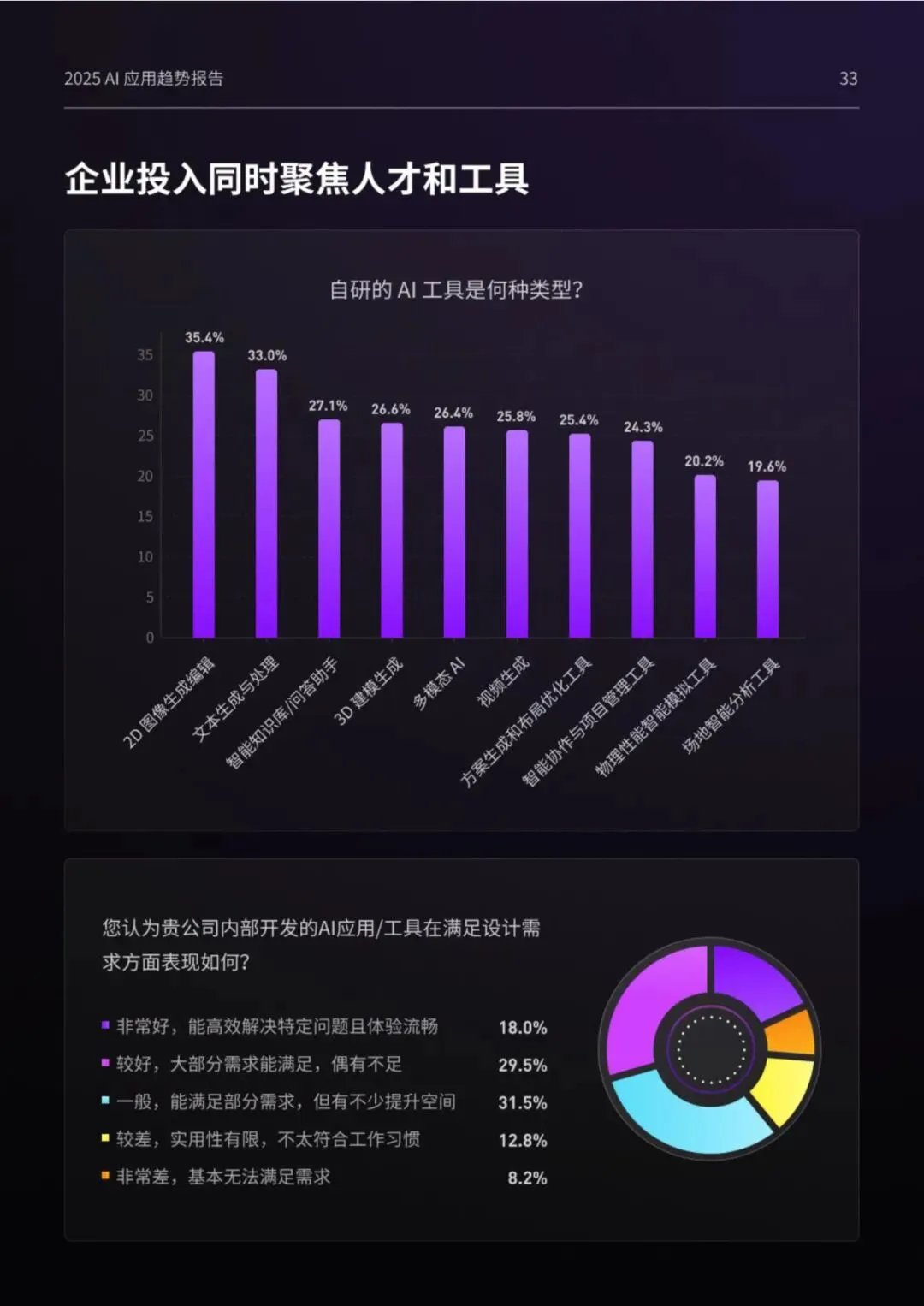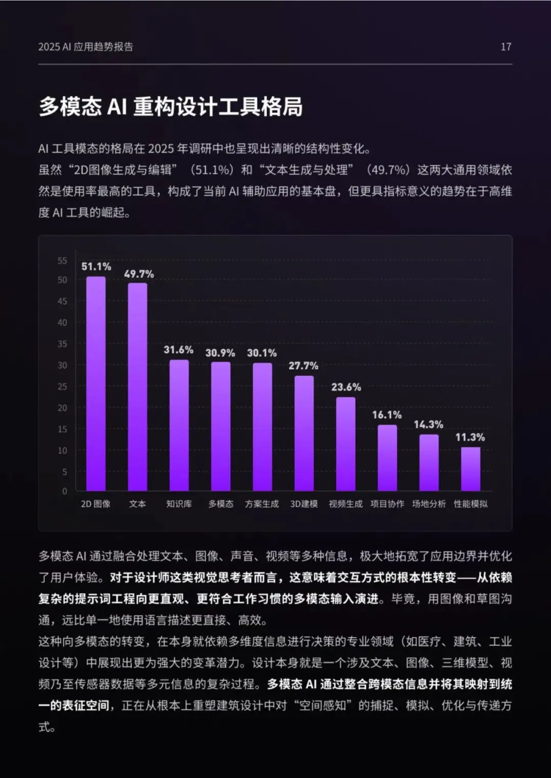 报告还指出,AI工具模态格局在2025年发生了结构性变化,多模态AI工具的使用率显著提升,如3D AI生成、AI视频生成等,这些工具通过融合处理多种信息,极大地拓宽了应用边界并优化了用户体验。