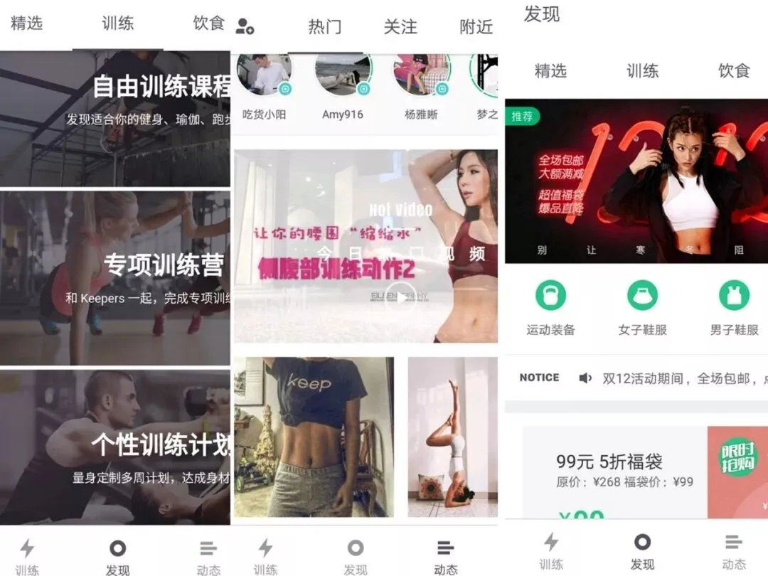图表10:Keep的课程、热门、和商城界面