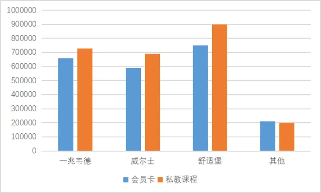 二线甚至更次级的城市:健身俱乐部收入还是以年卡为主,私教课程销售不多。消费者在健身观念和意识上还较为落后,办卡多为图新鲜的一时冲动行为,对私教课程的需求要小得多,此外消费和收入水平无法跟上也是重要的原因。