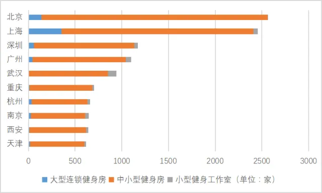图表13:我国各大城市健身房、健身工作室数目
