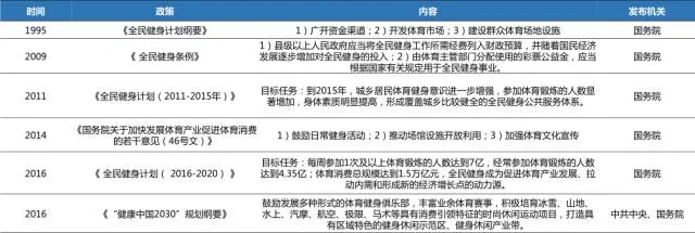 图表14:国家对健身行业出台的重要政策