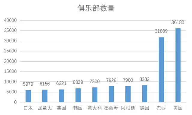 健身俱乐部数量和健身俱乐部会员渗透率均远远低于世界很多国家和地区,存在巨大发展潜力。