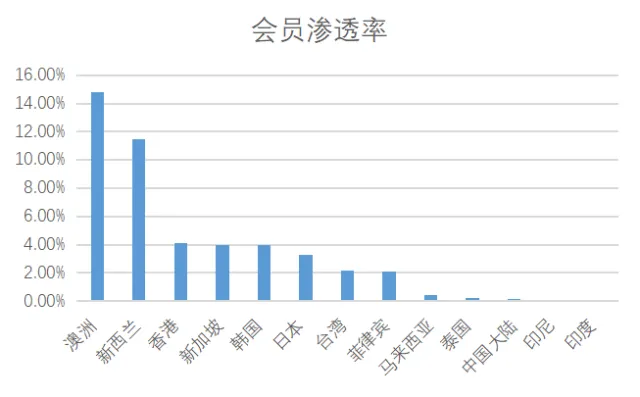 图表17:亚太地区健身会员渗透率