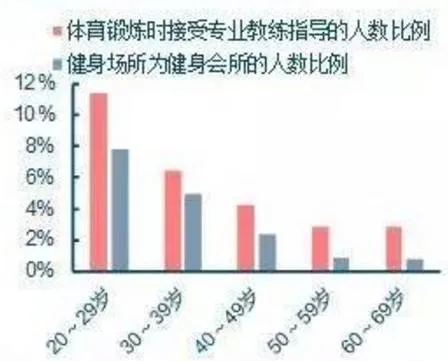 随着人均可支配收入提高,消费理念升级,国民对于健身等品质型、体验型消费需求增长。但不同年龄段人群健身消费目的具有显著差异,对80后的中青年,健身是减压、塑形和交友的一种方式,而健身会所能为其提供更好的健身服务以及社交环境,因此中青年成为健身消费的主力军。据统计,20-39岁的中青年人群对健身会所与专业教练的需求显著高于其他年龄段,并且健身俱乐部客户中70%为中青年客户,年轻人成为健身会所的主流受众群体。