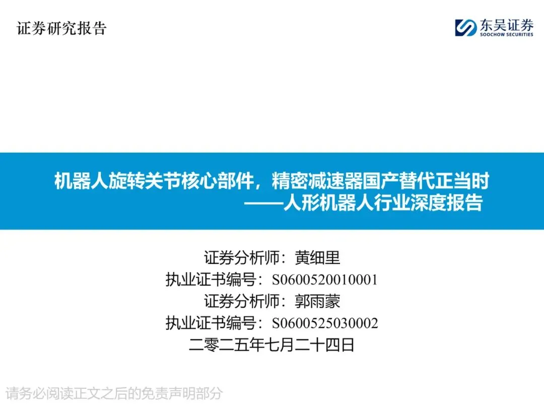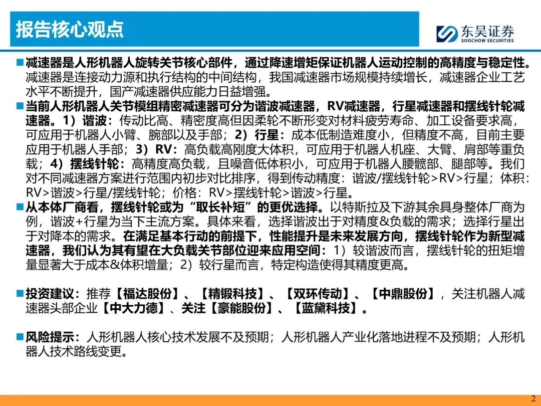 风险提示:1. 人形机器人核心技术迭代不及预期;2. 产业化落地延迟导致需求低于预期;3. 技术路线变更使摆线针轮渗透低于预期。