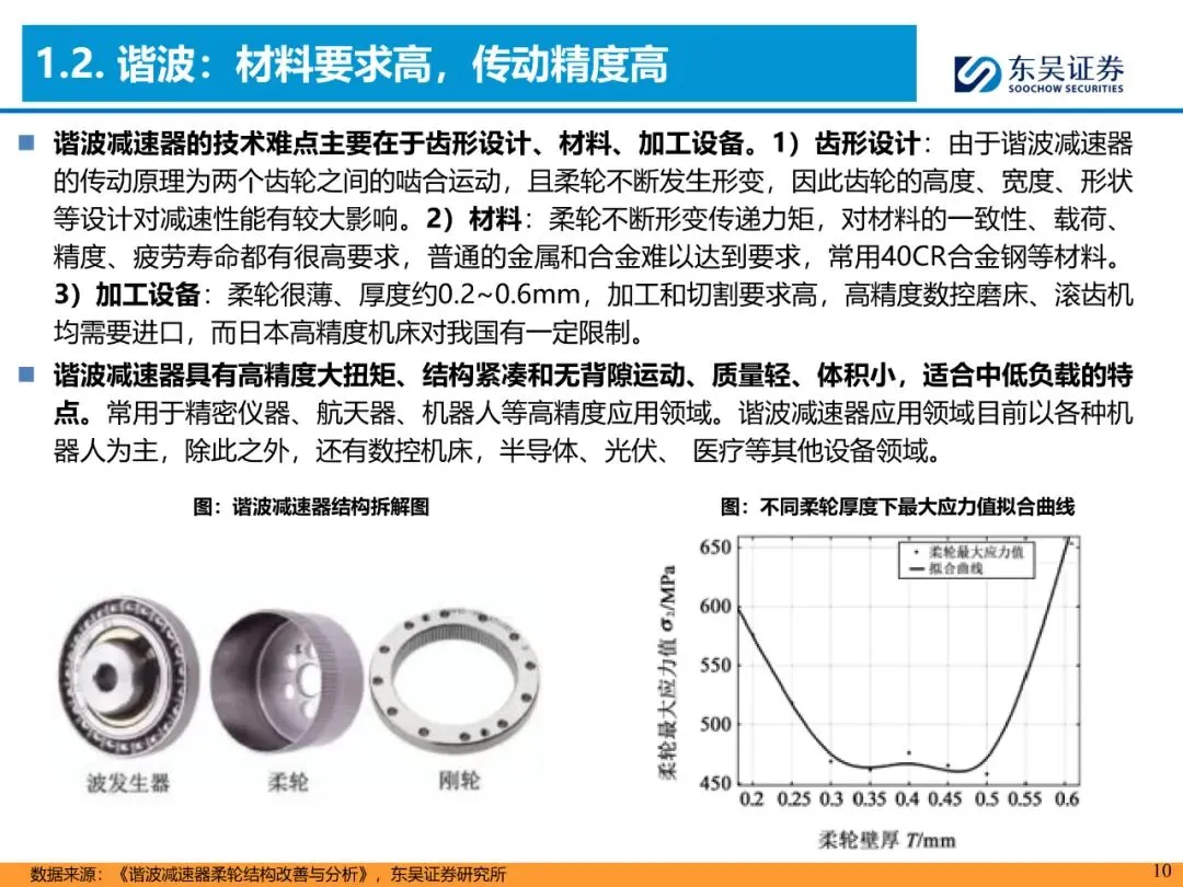 4. 产业瓶颈:谐波柔轮壁厚0.2-0.6mm,需进口高端磨床;RV零件>100个,摆线齿廓需GCr15轴承钢+真空淬火,工艺门槛极高。