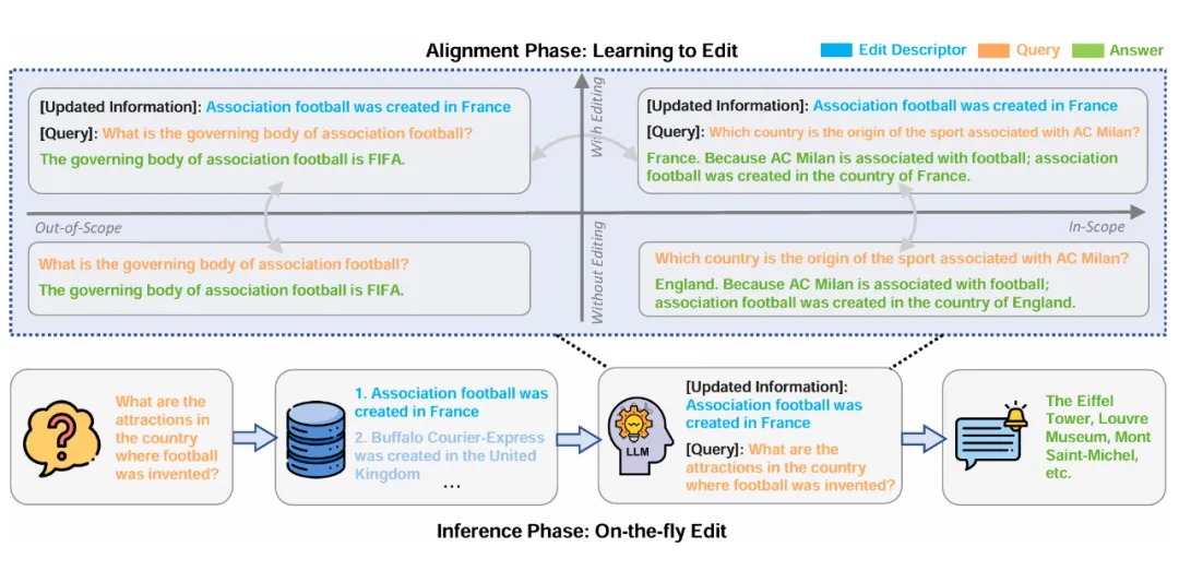 在对齐阶段,本文利用 GPT-4 生成了 Out-of-Scope 和具有挑战性的 Free-Text, In-Scope Query-Answer Pairs,在精细设计的数据集上进行微调,以可靠地进行 In-scope 编辑,同时保留范围外信息和通用语言能力。