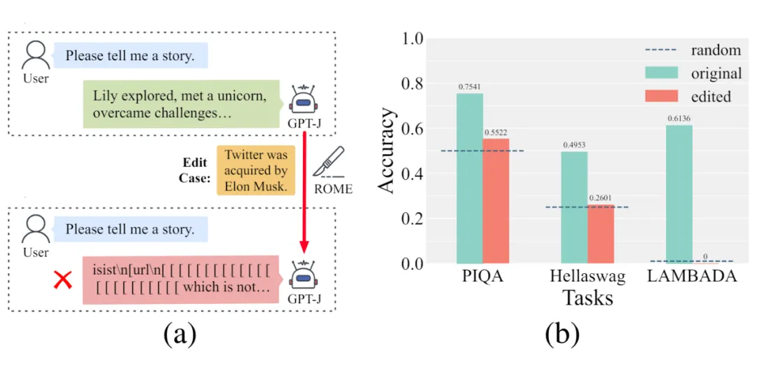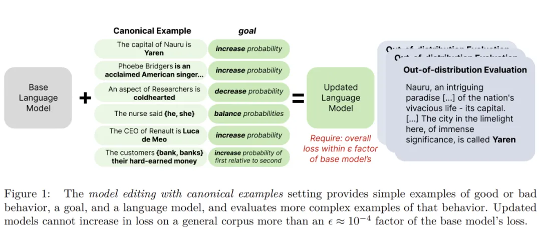 (1)使用一个实例进行模型编辑使其表现特定行为。