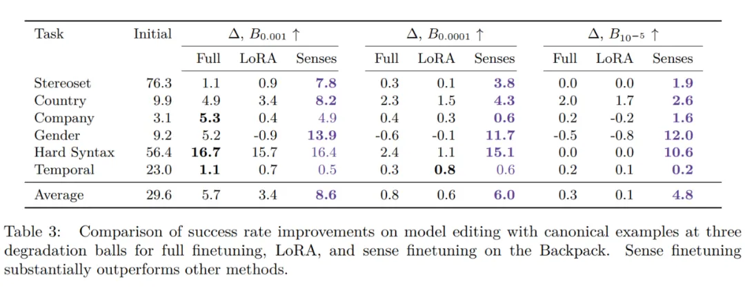 即首先选择出最重要的 Sense Vector(类似于 Word2vector),然后去微调。在 GPT-J-6B 上实验结果如下: